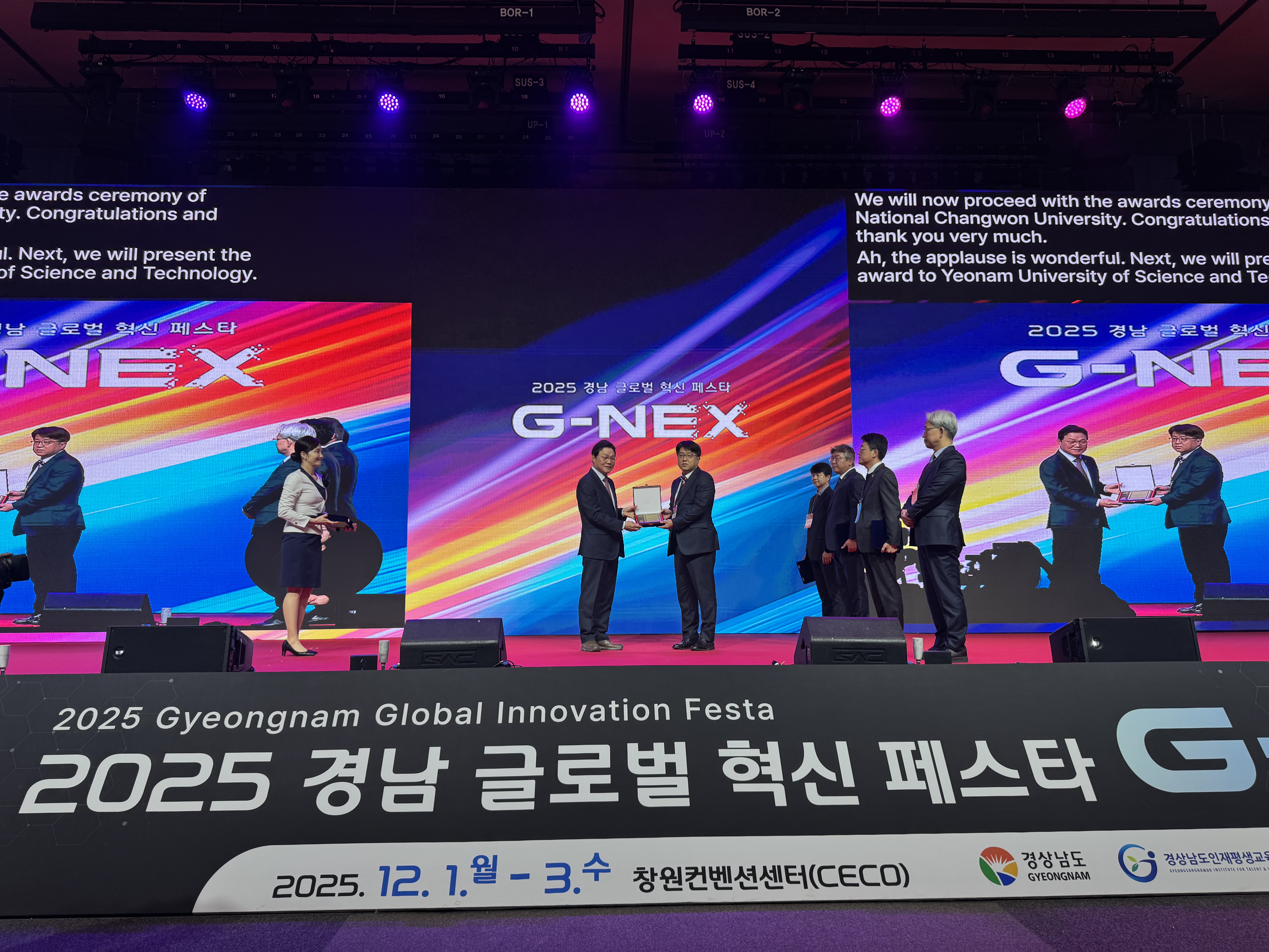 연암공과대학교(총장 안승권)가 ‘2025 경남 글로벌 혁신 페스타(G-NEX)’에서 산학연협력 우수대학으로 선정되어 도지사 표창을 수상했다.